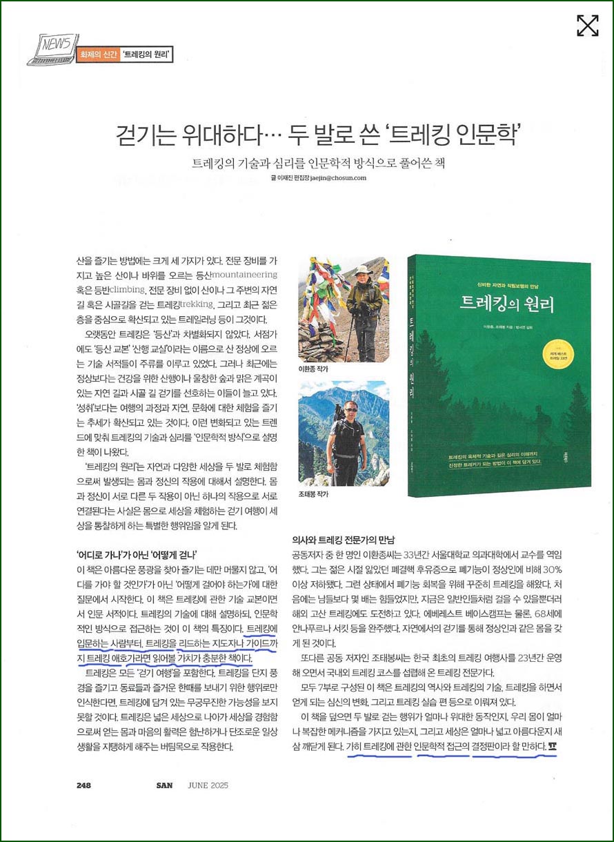 ¸¹Àº »ç¶÷µéÀº Æ®·¹Å·ÀÌ ÀÚ¿¬ÀÇ ¾Æ¸§´Ù¿î dz°æ¸¸À» Áñ±â±â À§ÇÑ °ÍÀ¸·Î ¾Ë°í ÀÖ´Ù. Æ®·¹Å·¿¡´Â ¿ì¸®¸¦ À¯ÀÍÇÏ°Ô ¸¸µé¾î ÁÖ´Â »ç½ÇµéÀÌ ¹«ÇÑÈ÷ Á¸ÀçÇϰí ÀÖÀ½¿¡µµ ºÒ±¸Çϰí, ±×Àú dz°æ¸¸ °íÁýÇϰí ÀÖ´Ù. Æ®·¹Å·¿¡´Â Àå½Ã°£ °ÉÀ½À¸·Î½á ½ÅüÀÇ °Ç°­ÇÔ°ú Á¤½ÅÀû ÀÚÁ¸°¨À» ¾òÀ» ¼öµµ ÀÖÀ¸¸ç, ½Åºñ·Î¿î ÀÚ¿¬°ú ´Ù¾çÇÑ Áö¿ªÀ» µÎ ¹ß·Î üÇèÇÔÀ¸·Î½á ÀÌ ¼¼»óÀ» ÅëÂûÇÒ ¼öµµ ÀÖ´Ù. ÀÌ Ã¥Àº ´ëÀÚ¿¬°ú ´Ù¾çÇÑ ¼¼»óÀ» µÎ ¹ß·Î üÇèÇÔÀ¸·Î½á ¹ß»ýµÇ´Â À°Ã¼ÀÇ ÀÛ¿ë(°Ç°­, µ¿ÀÛ, À½½Ä, ¿ëǰ)°ú Á¤½ÅÀÇ ÀÛ¿ë(¿ª»ç, ÀÚ¿¬, ½É¸®, ÀǹÌ)À» °úÇÐÀû ¹æ½Ä°ú Àι®Àû ¹æ½ÄÀ¸·Î Ä£ÀýÇÏ°Ô ¼³¸íÇϰí ÀÖ´Ù. ºÎ·ÏÀ¸·Î ¸¶·ÃÇÑ ¡¯¼¼°è º£½ºÆ® Æ®·¹ÀÏ 33¼±¡®Àº ¼¼°èÀûÀ¸·Î °ø½Å·Â ÀÖ´Â ´ÜüµéÀÌ ÃßõÇÑ Æ®·¹ÀÏ Áß¿¡¼­ 33°÷À» ¾ö¼±ÇÏ¿© »çÁø°ú ÇÔ²² ¼Ò°³Çß´Ù. ´ëÀÚ¿¬°ú ´Ù¾çÇÑ ¼¼»óÀ» üÇèÇϱ⿡ ÃÖ°íÀÇ Æ®·¹ÀÏÀÌ µÉ °ÍÀÌ´Ù.